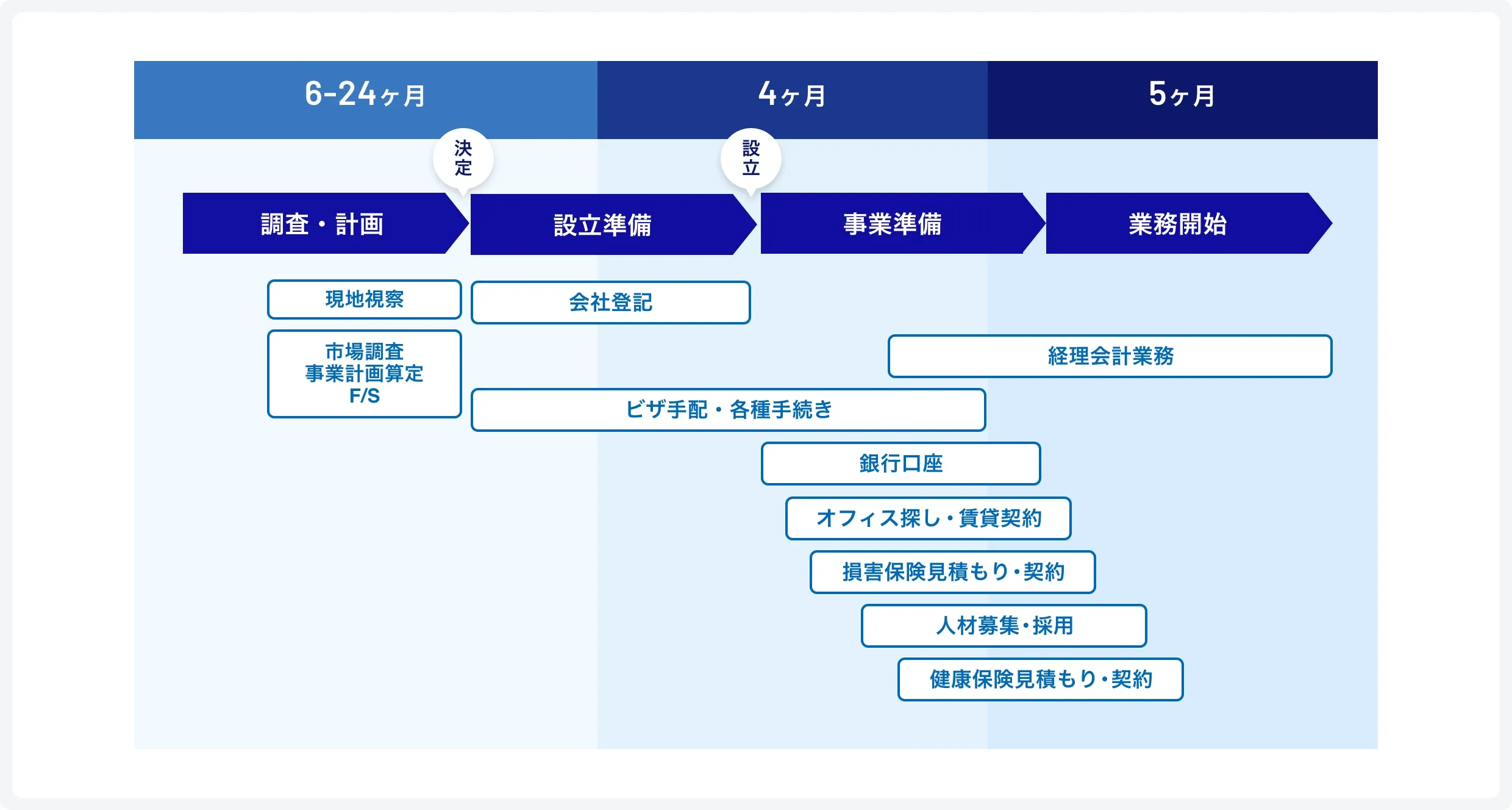 バーチャル・オフィスは、登記上の住所貸しや郵送物の転送を提供するサービスとなり、市場調査など進出の前段階で活用されています。
