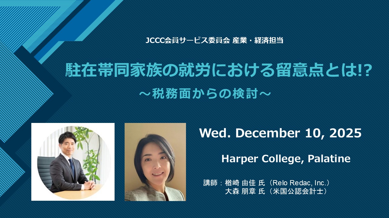 駐在帯同家族の就労における留意点とは!?~税務面からの検討~│12/10(水) セミナー開催 in シカゴ